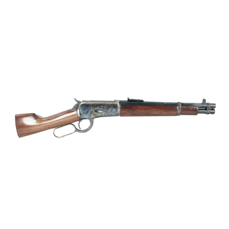 Skrócona wersja karabinka powtarzalnego firmy Winchester, słynnego modelu z 1892 roku. Broń korzysta z zamka dwutaktowego sterowanego dolną dźwignią wahliwą. Jest to system “lever action”, spopularyzowany w setkach westernów. Lufa długości 305 mm (12 cali) zapewnia świetną składność. Sprzyja temu także skrócona kolba z orzecha włoskiego. Marmurkowana komora zamkowa wygląda nostalgicznie.