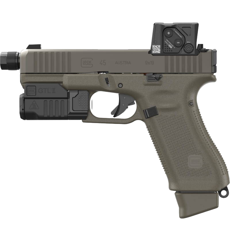 GLOCK 45 MOS Hunter Edition, nowa wersję jednego z najpopularniejszych modeli Glocka. Charakteryzuje się oliwkowo-zielonym kolorem i oferuje wszystkie sprawdzone, wysokiej jakości funkcje 5 Gen.